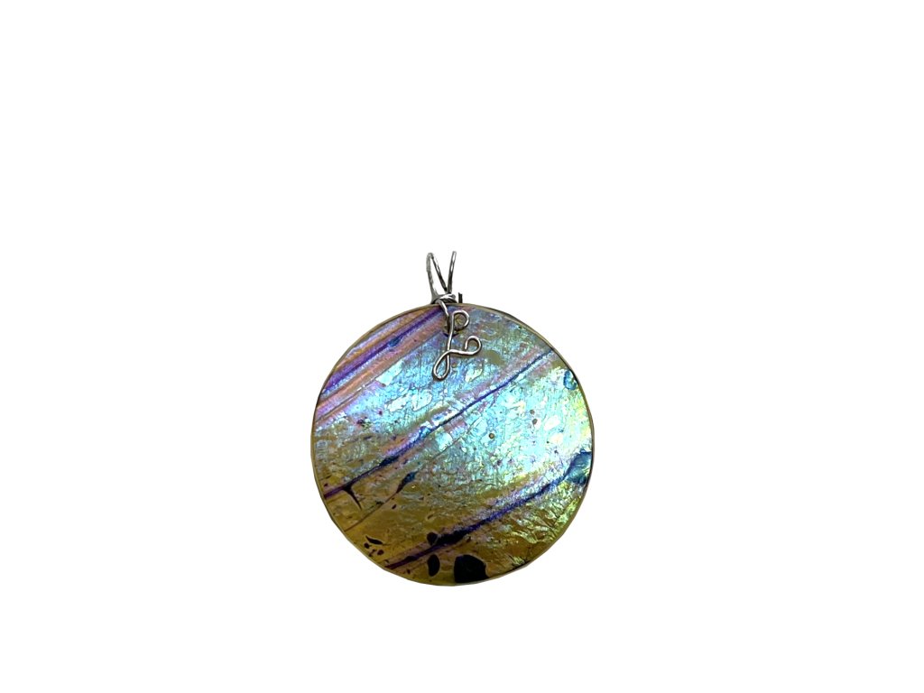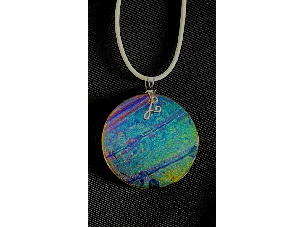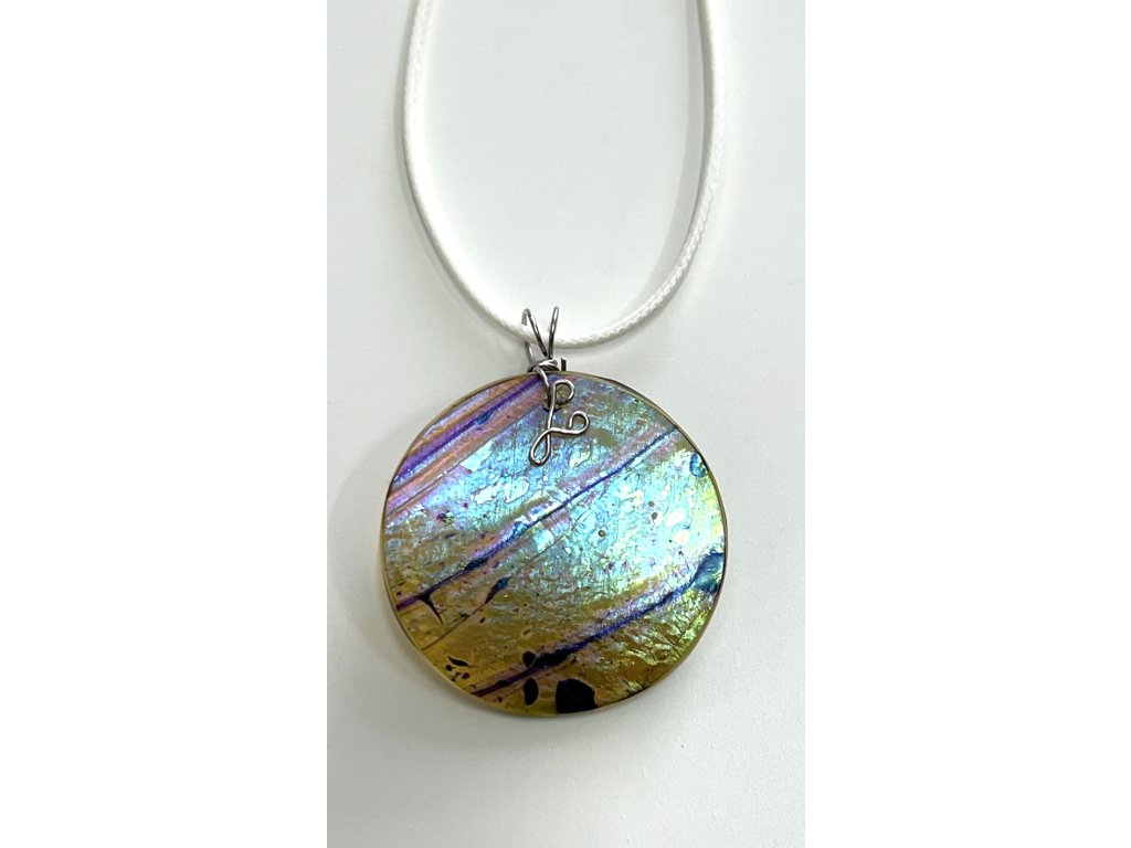 Český křišťál zdobený speciální starou technologií, která vytváří na povrchu skla duhový lesk ovlivněný teplotou a typem skla. Dodržením této techniky, kladoucí důraz na barvu, se snaží o tzv. irisový povrch, typický pro secesní sklo. Každý kus šperku je originálně irizován, barevně dekorován a vlastnoručně zpracován a je tedy neopakovatelný.
