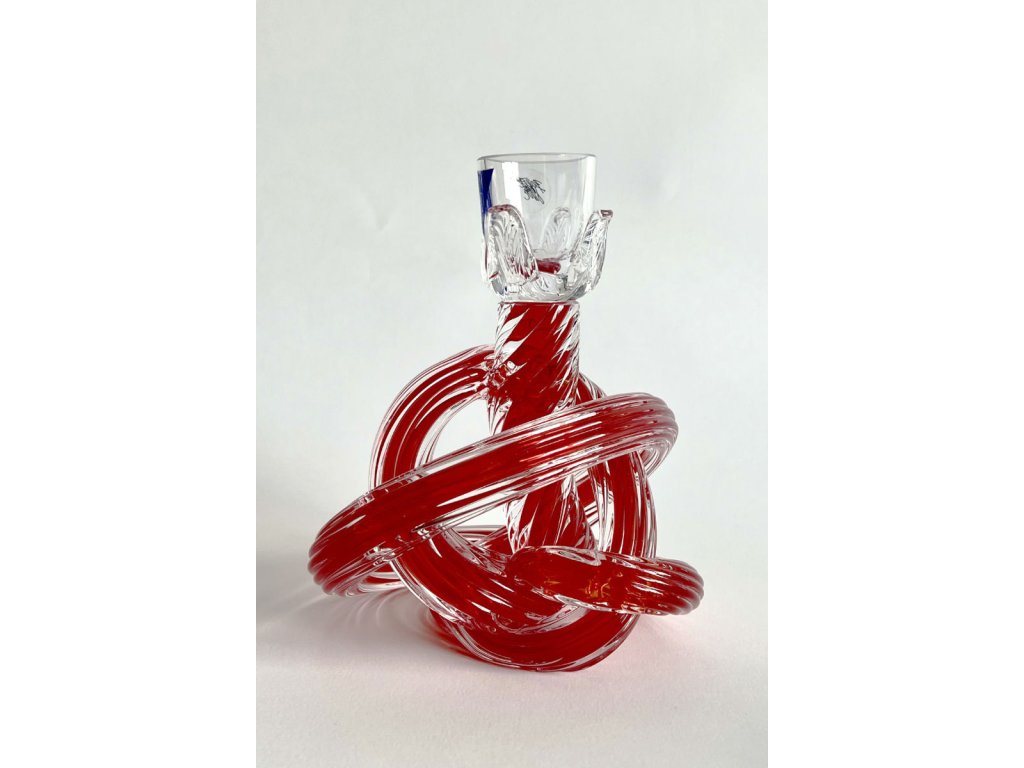 Malý svícen na jednu svíčku v podobě barevného propleteného